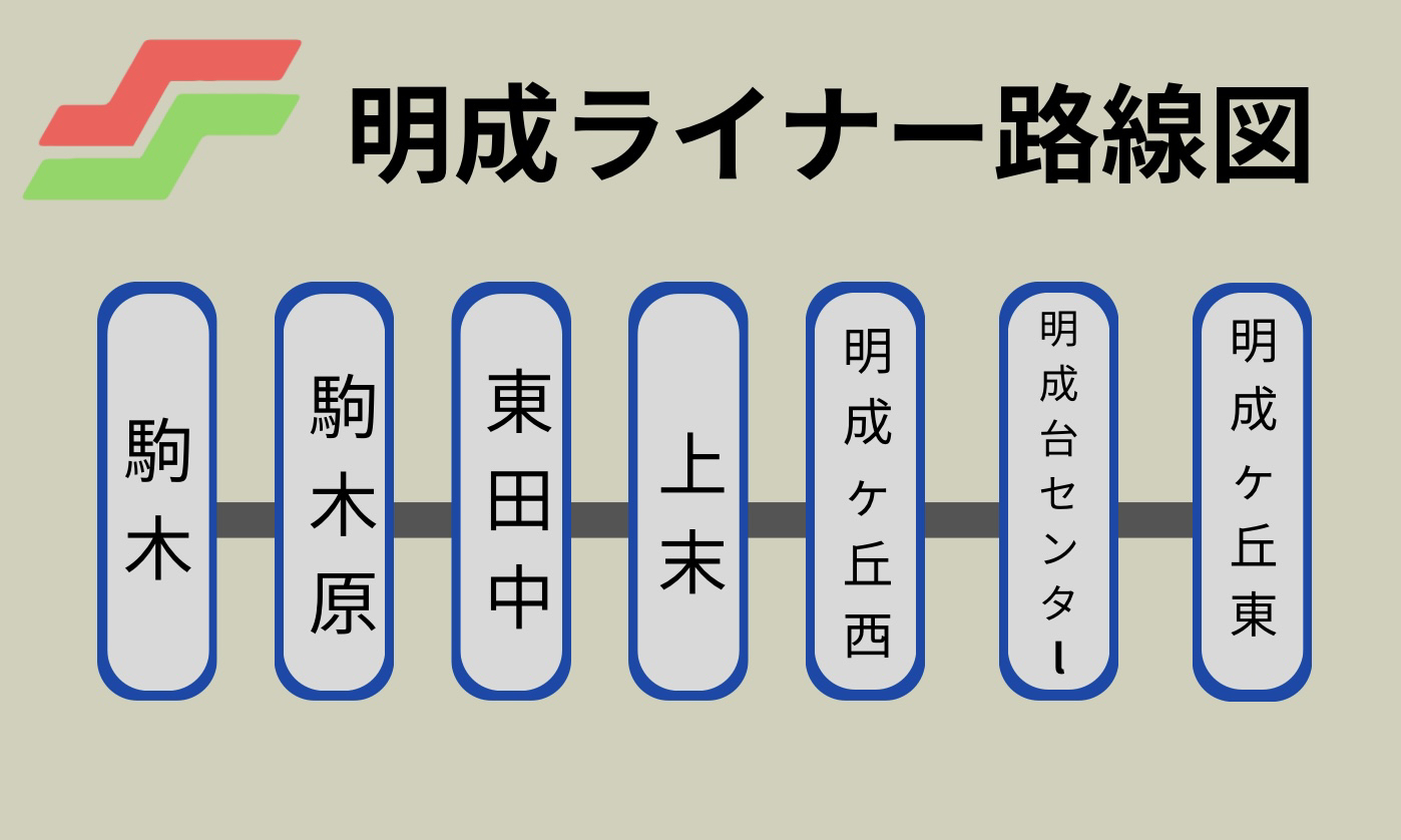 明成ライナー路線図 お役立ち X Facebook はてブ Pocket LINE コピー 2025.09.05 以下が明成ライナーの路線図です (2025/09/05時点の内容です。変更する可能性があります。)